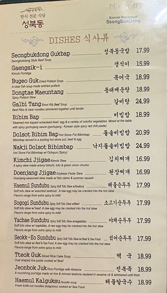 Seong Buk Dong Menu (Update 2025)